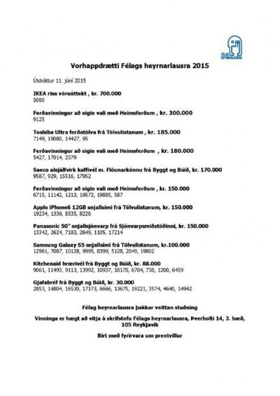 Vorhappdrætti Félags heyrnarlausra 2015
